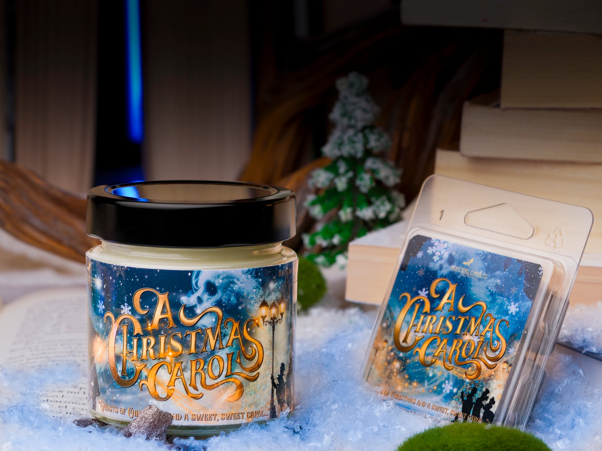 La vela aromática inspirada en fantasma de las navidades pasadas de "A Christmas Carol" en su formato clásico, está creada para amantes de la esencia más pura. Una vela blanca y de aspecto cremoso, con mecha de algodón orgánico y la etiqueta en papel glossy brillante.