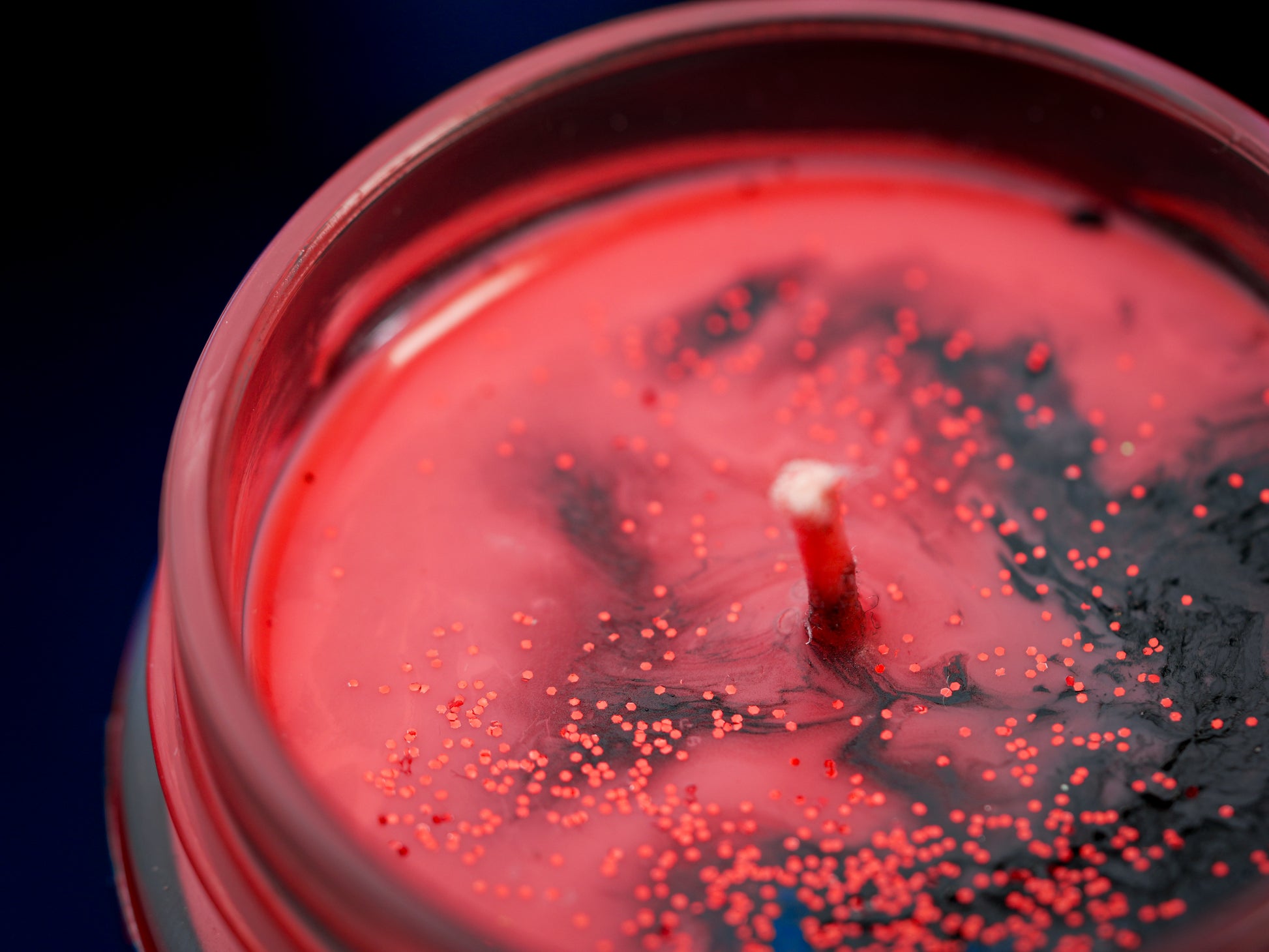 It can feature details such as decorative melts on the surface, colorful marbled edges, or unique effects. Each candle is different.