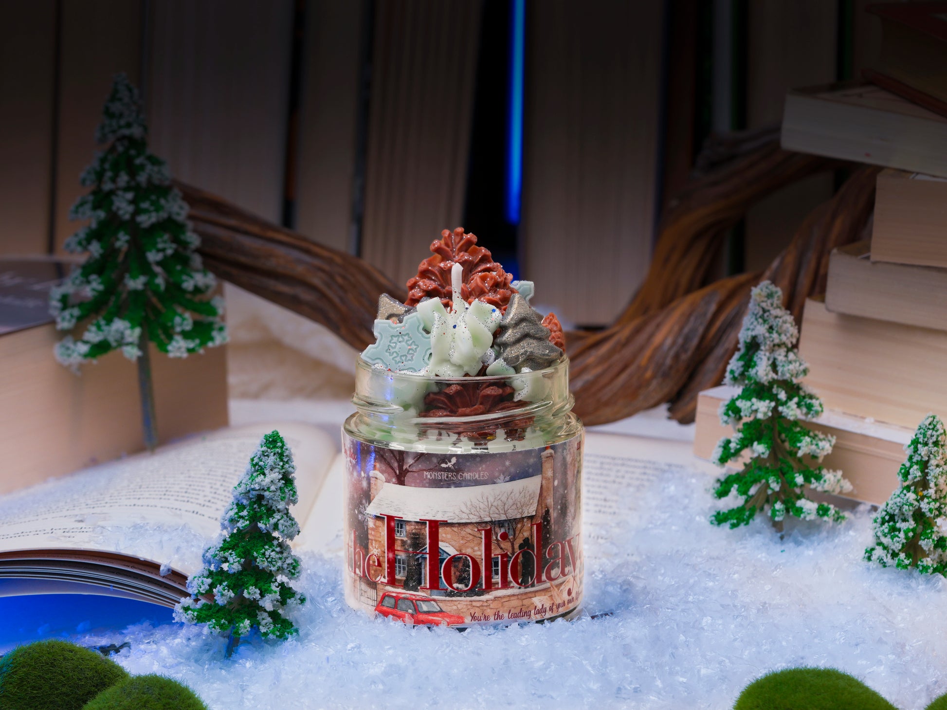 La vela aromática de The Holiday posee la fragancia de Rosehill Cottage. El calor de una chimenea encendida, libros que aguardan a ser leídos, copos de nieve que aterrizan en el alfeizar de las pequeñas ventanas de madera, y de fondo; la dulce esencia de las frutas al punto de caramelo o tanghulu; el dulce navideño preferido hecho con frutas, ron y azúcar moreno.