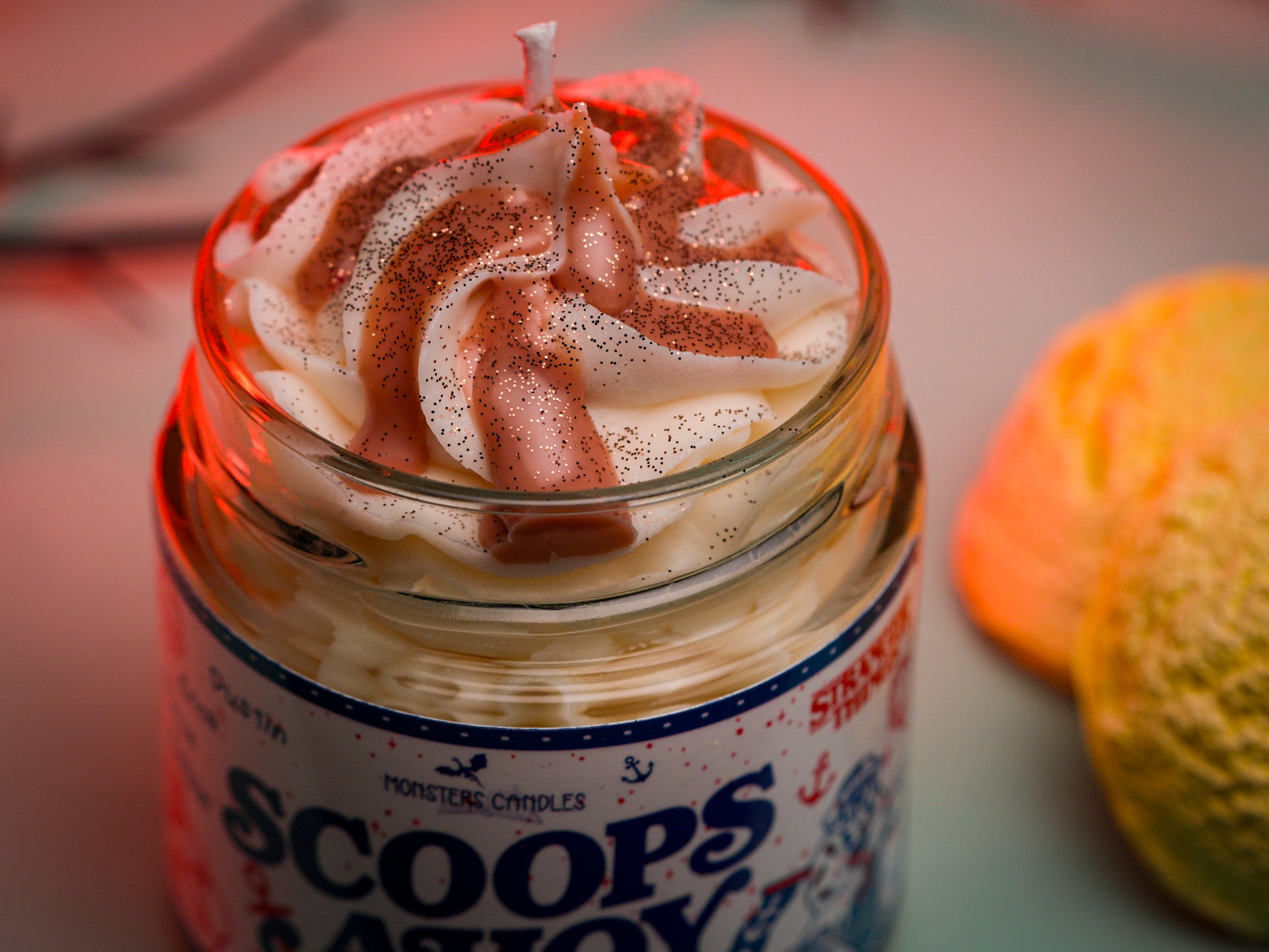 Cada vela recrea un helado artesanal, cubierta con diferentes siropes dulces, como si acabaran de salir de la vitrina de Scoops Ahoy. Un conjunto pensado para disfrutarse junto o por separado… aunque lo normal es no querer elegir solo uno...